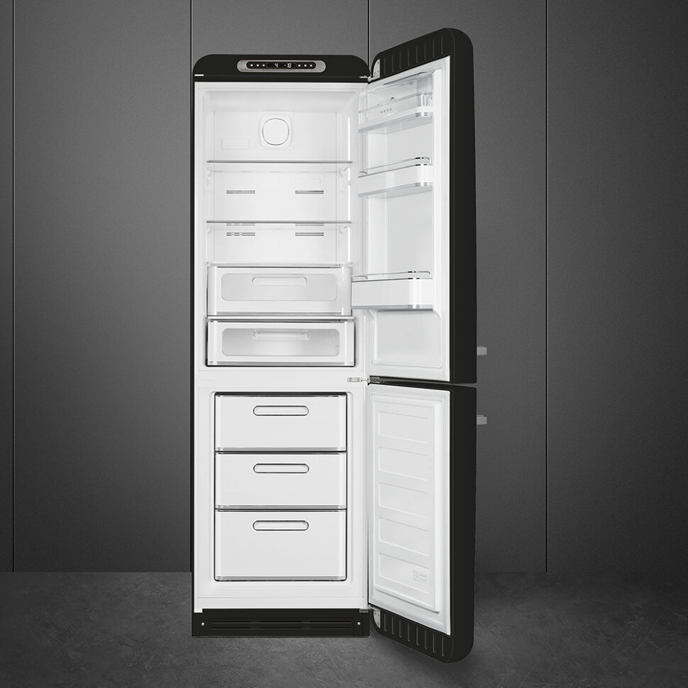 Холодильник SMEG FAB32RBL5 предназначен для кратковременного хранения различных готовых блюд, охлаждённых продуктов и напитков, а также для заморозки и длительного хранения замороженных продуктов и полуфабрикатов. Полки изготовлены из закалённого стекла, благодаря чему выдерживают большую нагрузку. Полки на дверцах выполнены из пластика. Данная модель идеально подойдёт для авторских интерьеров в уникальном стиле или для кухонь в классическом исполнении.